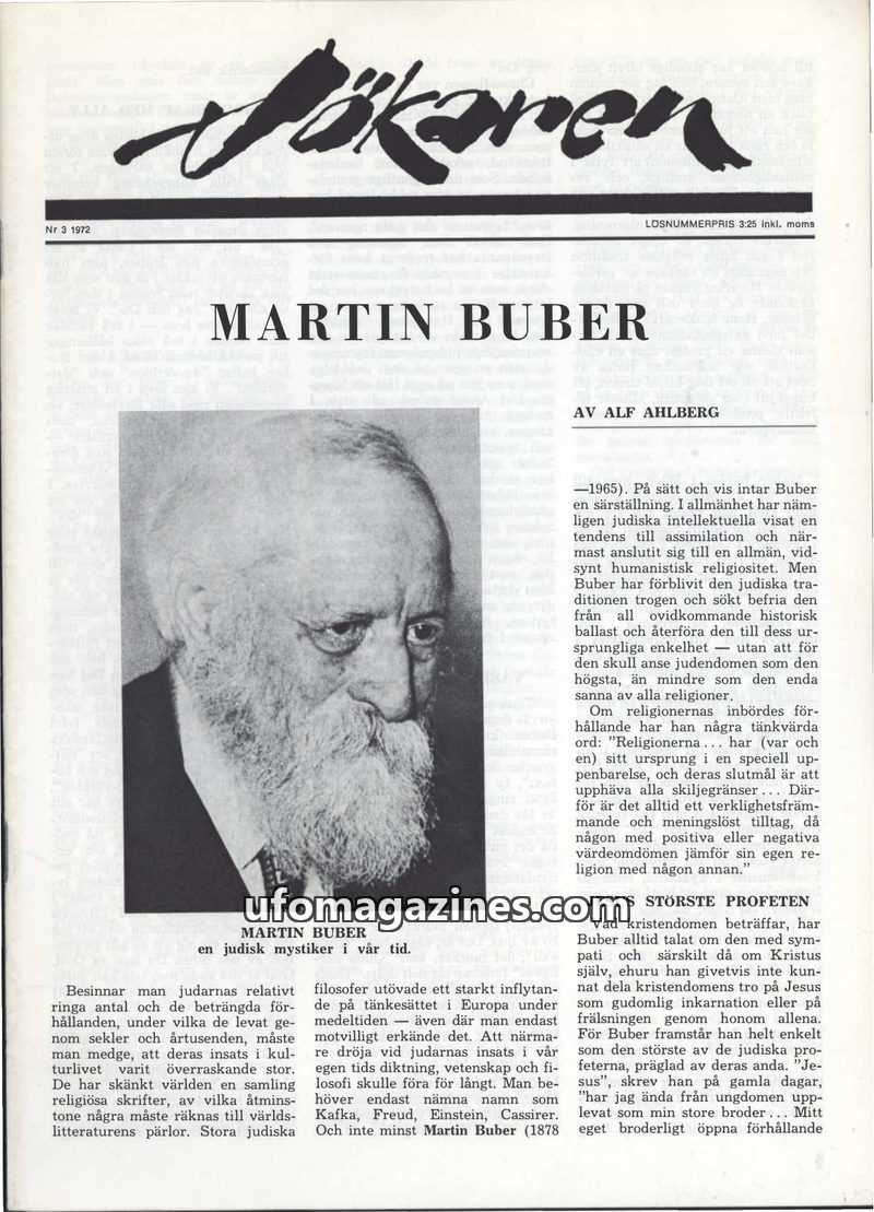 This issue of Läkaren magazine features an in-depth look at Martin Buber, a Jewish mystic and philosopher, exploring his connection to Chassidism and his views on religion and huma