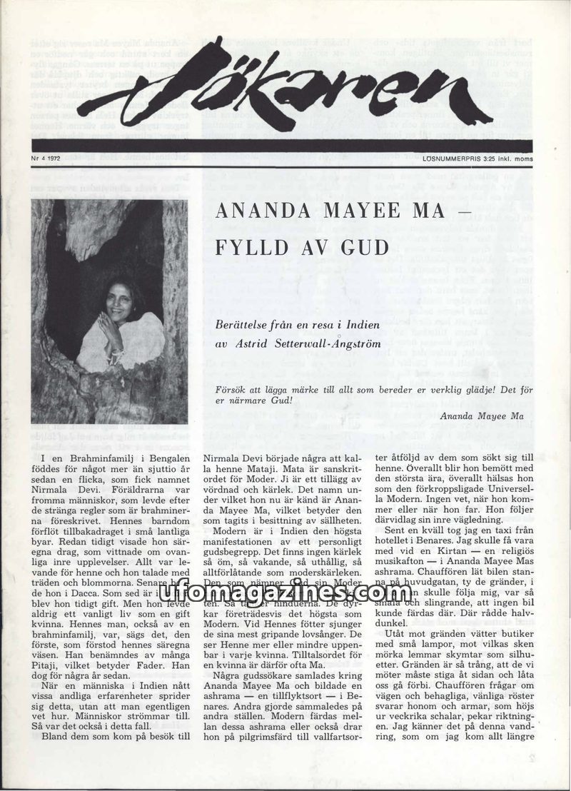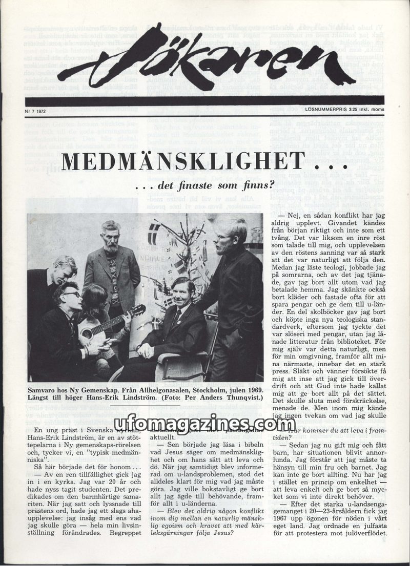 This issue of Sökaren magazine from 1976 delves into various spiritual and para-psychological topics. It features an interview with Sri Chinmoy on meditation and the path of the he