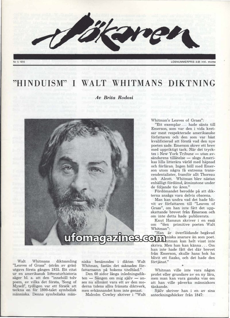 This issue of Läkaren magazine delves into the connections between Hinduism and the poetry of Walt Whitman, particularly his seminal work 'Leaves of Grass'. It explores Whitman's p