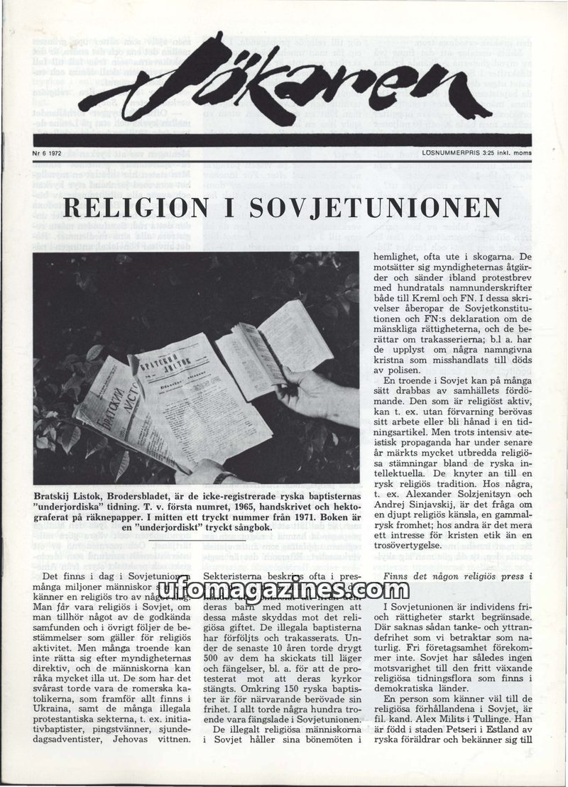 This issue of Päkaren focuses on the suppression of religion in the Soviet Union, detailing the difficulties faced by various religious groups, particularly illegal Protestant sect