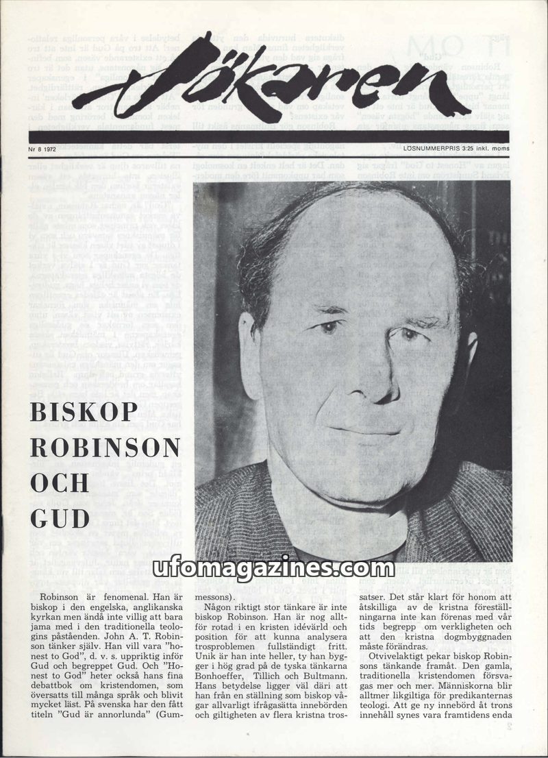 This issue of Hökaren magazine features an in-depth look at Bishop John A. T. Robinson's theological views, particularly his book 'Honest to God,' which challenges traditional Chri