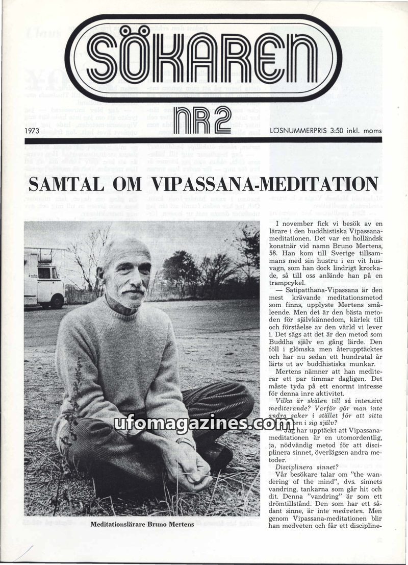 This issue of Sökaren features an interview with Vipassana meditation teacher Bruno Mertens, discussing the method's benefits for self-knowledge and mind discipline. It also explor