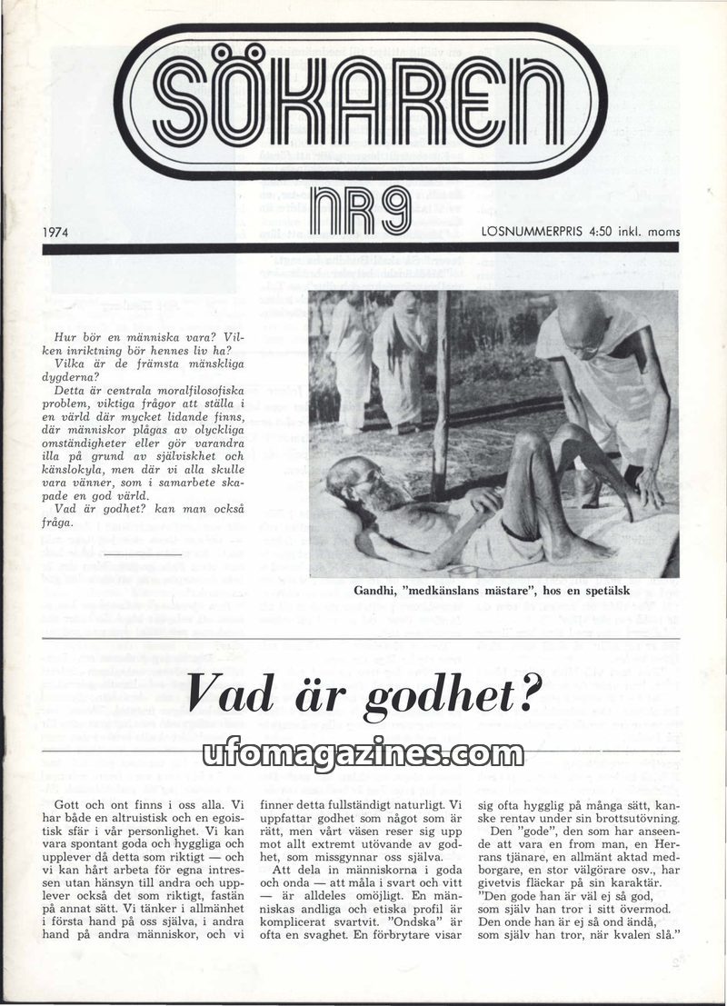 This issue of Sökaren (NR9, 1974) delves into the complex question of 'What is goodness?' through philosophical and ethical discussions. It features contributions from thinkers lik