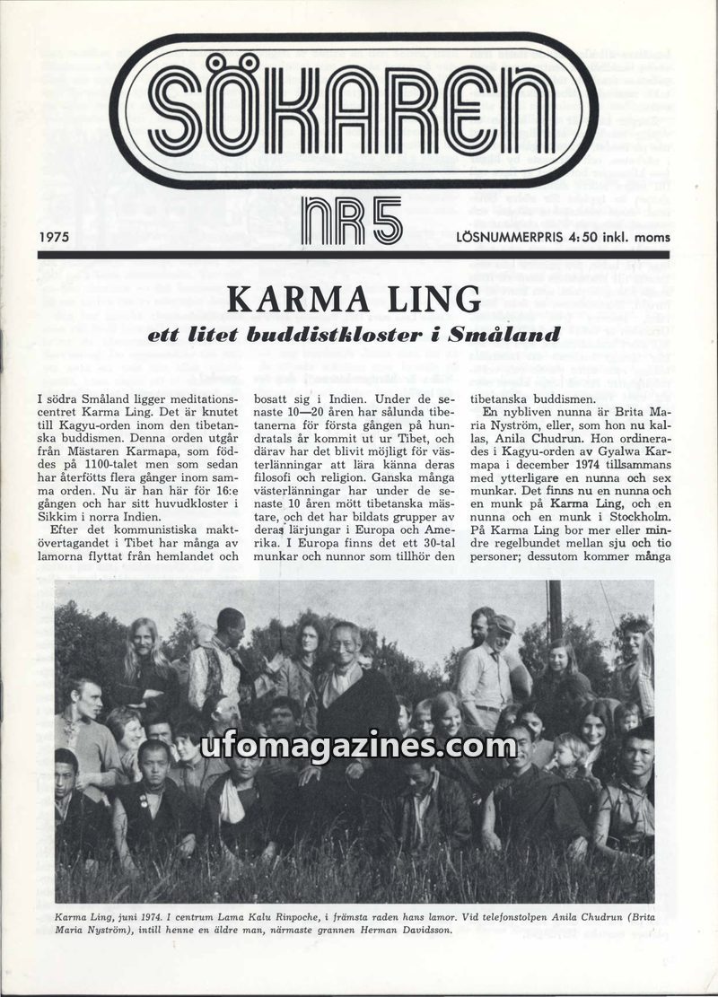 This issue of Sökaren focuses on the Karma Ling meditation center in southern Sweden, a branch of the Tibetan Kagyu-orden. It highlights the growing interest in Tibetan Buddhism am