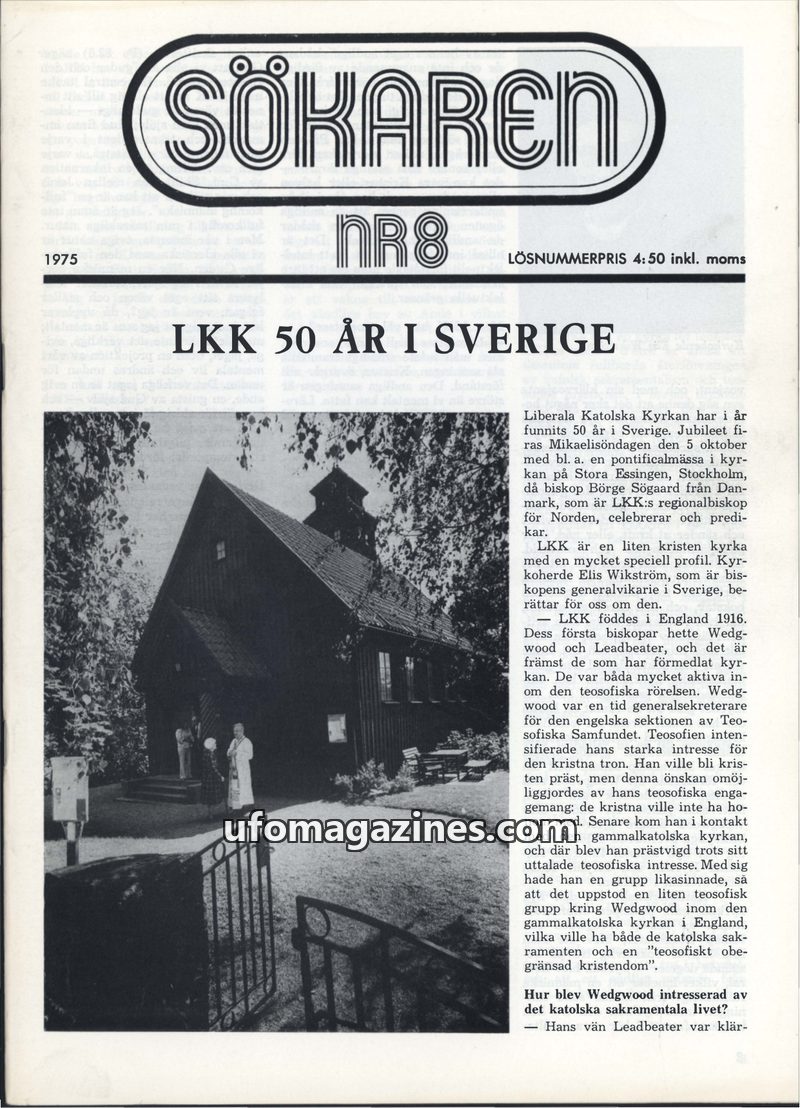 This issue of Sökaren magazine celebrates the 50th anniversary of the Liberal Catholic Church (LKK) in Sweden, detailing its origins in England and its unique blend of Catholic sac