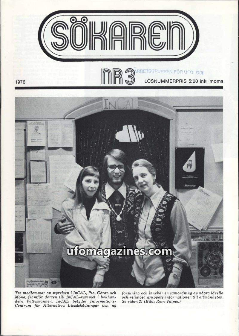 This issue of Sökaren magazine, dated 1976, focuses on alternative lifestyles and spiritual exploration. It highlights InCAL, an information center for alternative worldviews and n