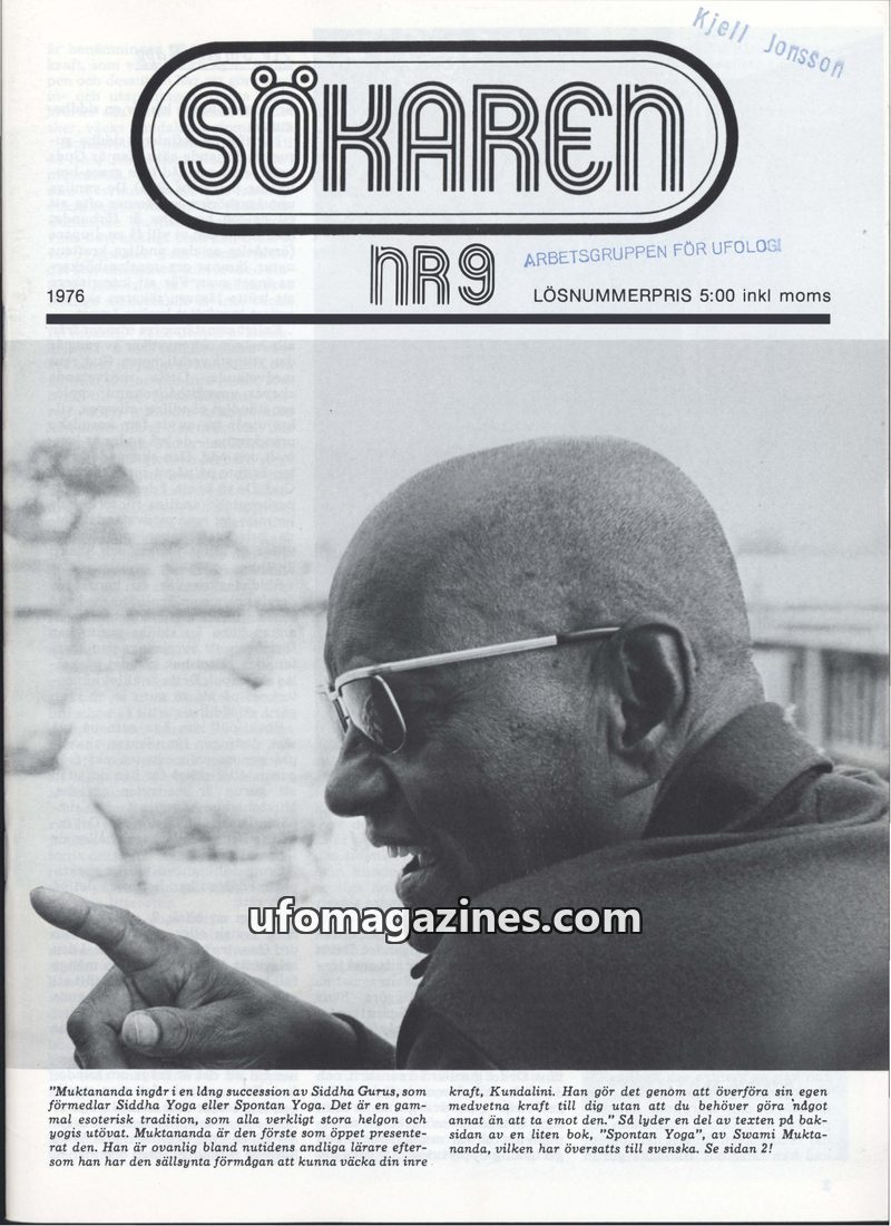 This issue of Sökaren magazine from 1976 delves into various spiritual and paranormal topics. It features an in-depth look at Siddha Gurus, particularly Swami Muktananda and his te