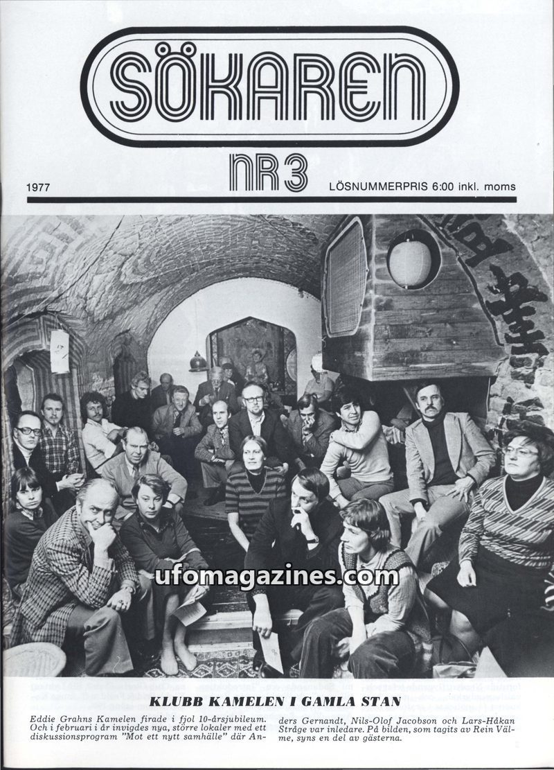 This issue of Sökaren (NR3, 1977) focuses on spiritual and philosophical explorations. It features Klubb Kamelen, a venue in Gamla Stan, Stockholm, that hosts discussions on variou