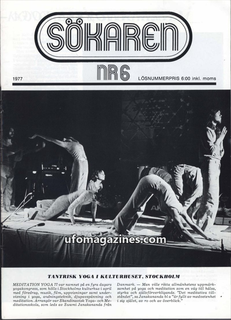This issue of Sökaren focuses on the "Meditation Yoga 77" congress held in Stockholm, detailing its aims and organizers, and featuring interviews with prominent yoga and meditation