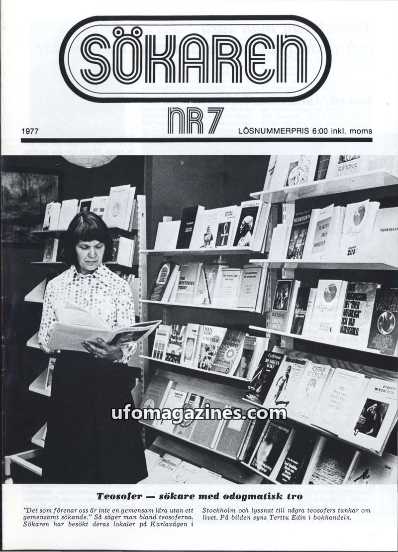 This issue of Sökaren magazine, NR7 from 1977, delves into theosophy, featuring interviews with practitioners like Terttu Edin and Curt Berg who emphasize a shared search for truth