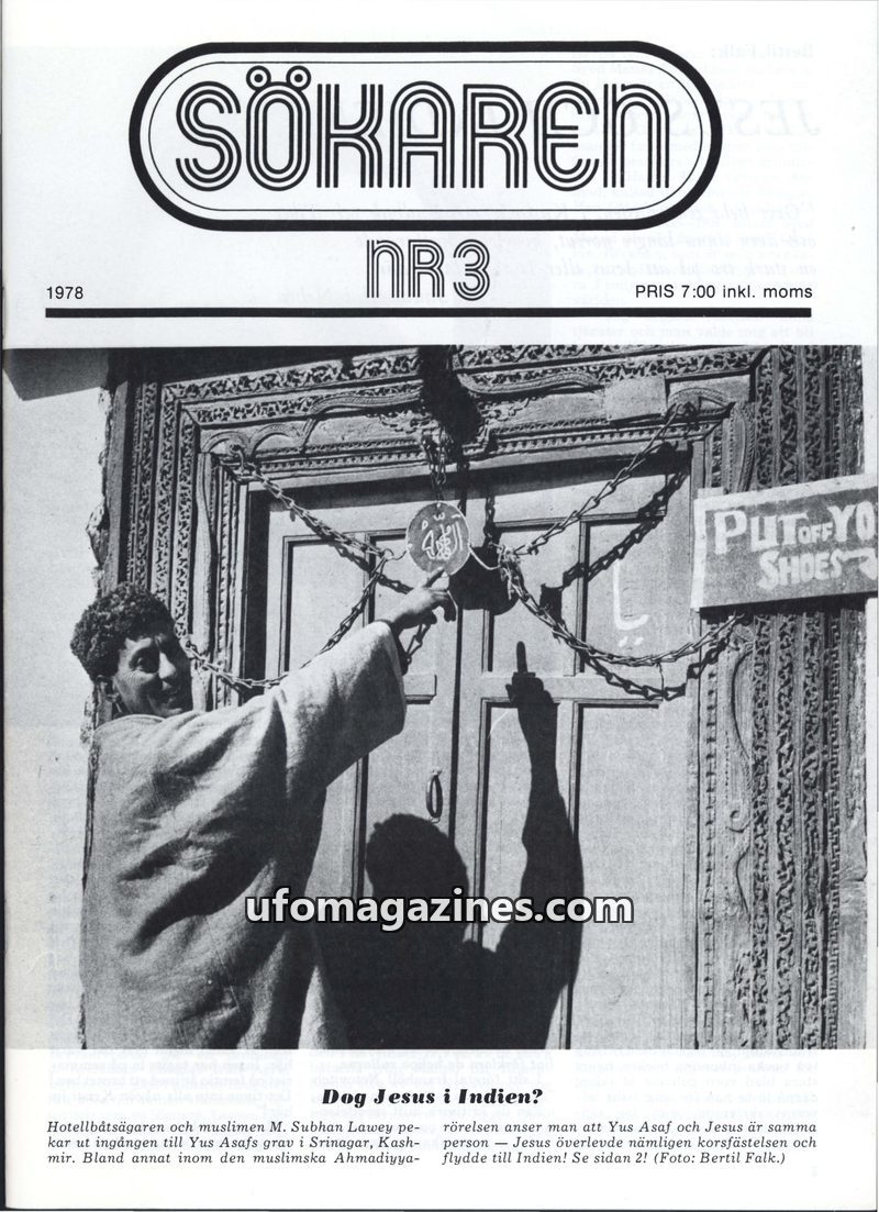 This issue of Sökaren explores the theory that Jesus, known as Yus Asaf, survived the crucifixion and traveled to India, with his tomb located in Srinagar, Kashmir. It delves into