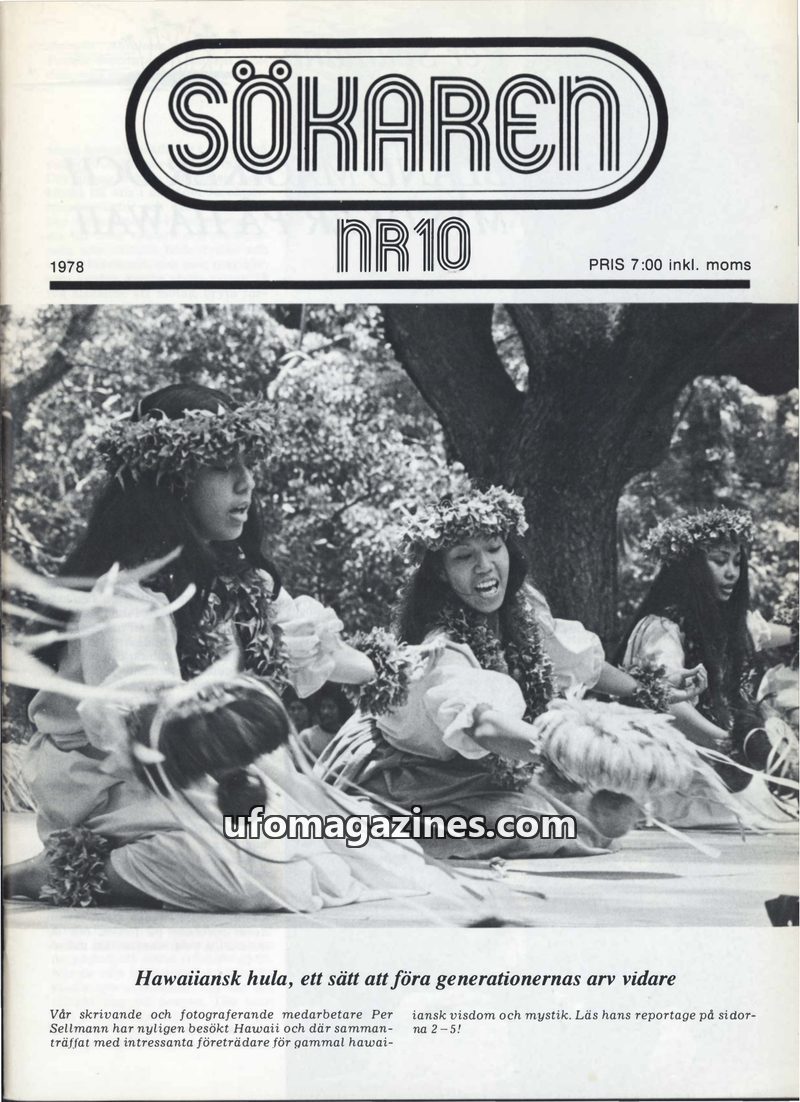This issue of Sökaren magazine from 1978 delves into various spiritual and esoteric topics. It features an article on Hawaiian Hula and Huna Science, an encounter with a Kahuna, an