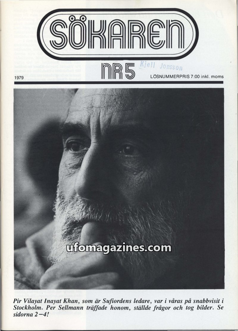 This issue of Sökaren magazine from 1979 includes an interview with Pir Vilayat Inayat Khan discussing the 'Holistic Age' and Sufism. It also features an in-depth investigation int