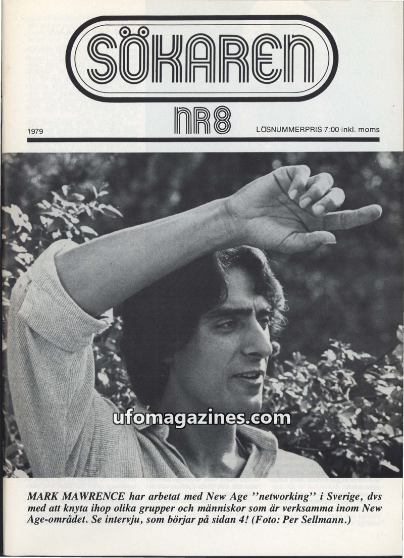 This issue of Sökaren (NR8, 1979) features Mark Mawrence discussing New Age networking in Sweden. It also covers the spiritual teachings of Sant Thakar Singh, a guru of Sant Mat. U