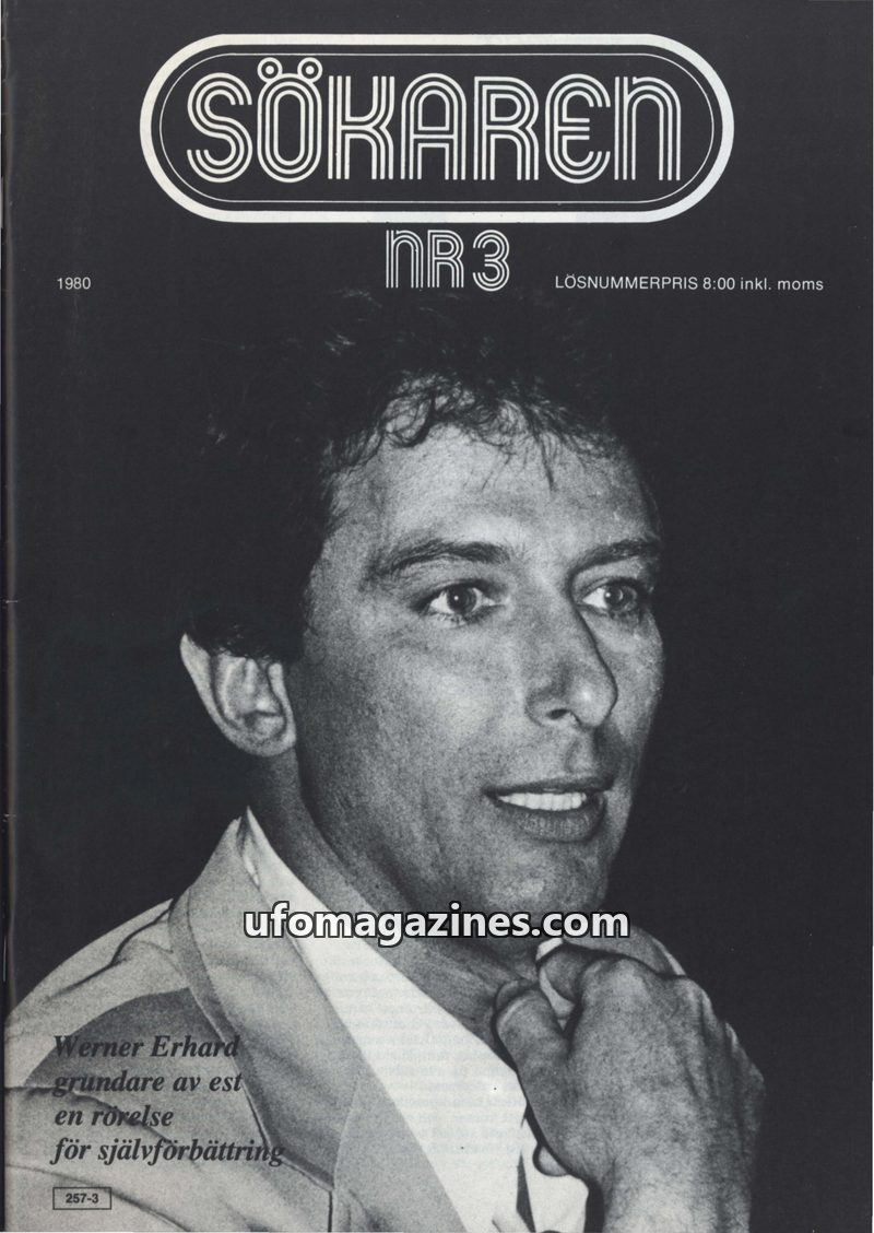 This issue of Sökaren magazine focuses on Werner Erhard and his self-improvement movement 'est'. It details the est seminars, their cost, and the reported impact on participants. T