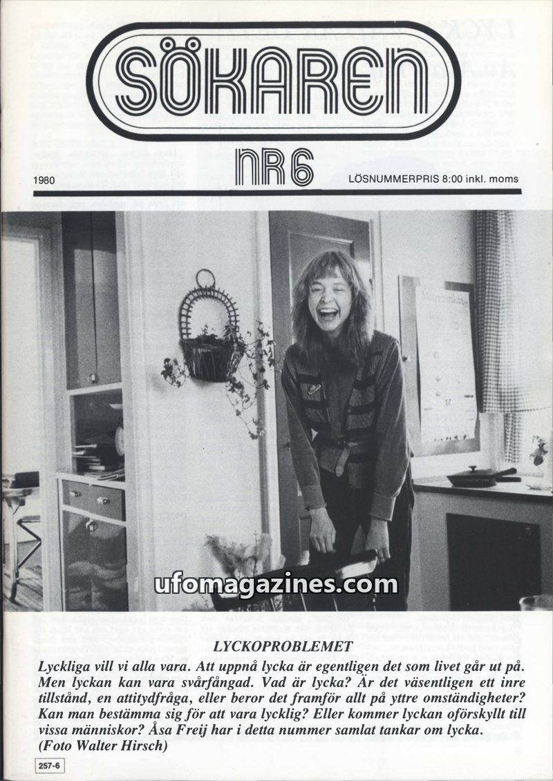 This issue of Sökaren magazine from 1980 delves into the complex issue of happiness, exploring its definition and attainment through various philosophical and psychological lenses.