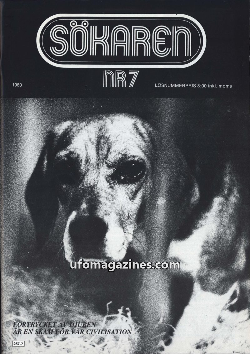 This issue of Sökaren magazine from 1980 delves into several critical topics. Ulf Löfgren argues that modern human existence is founded on the oppression of animals, calling for an
