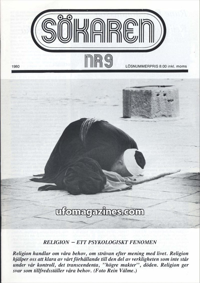 This issue of Sökaren magazine from 1980 delves into the psychological underpinnings of religion, exploring how it addresses human needs and provides answers to existential questio