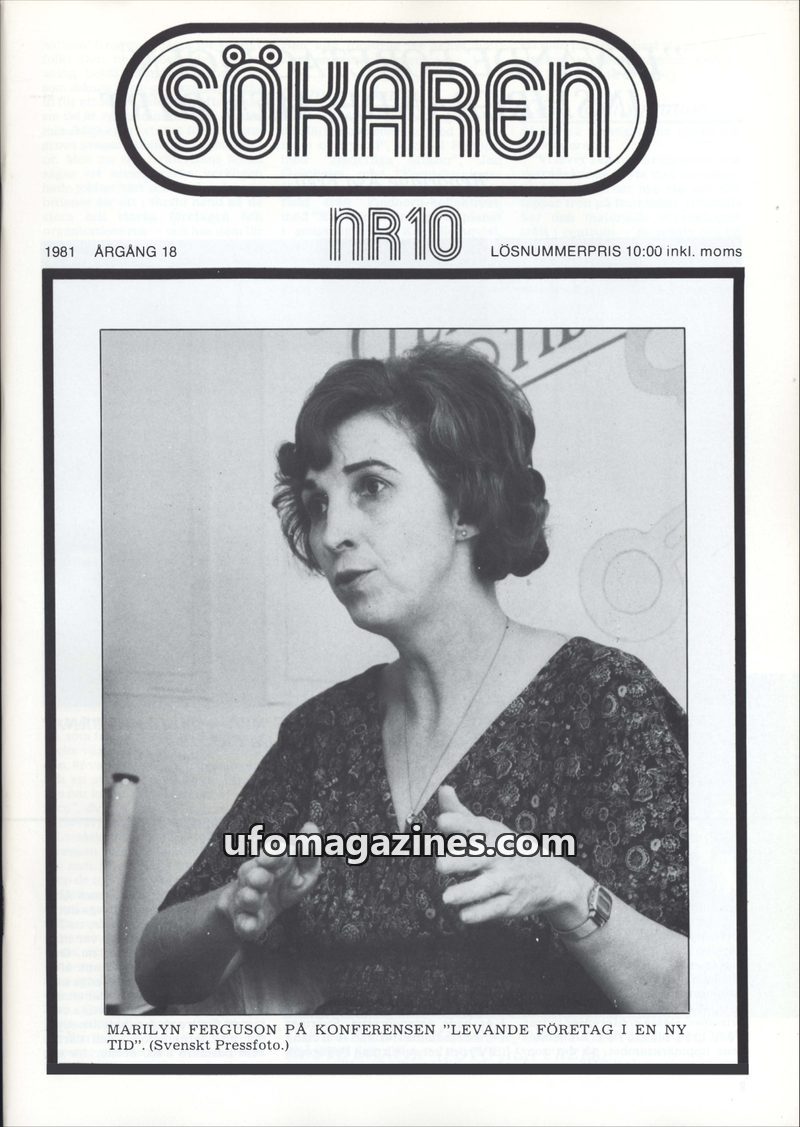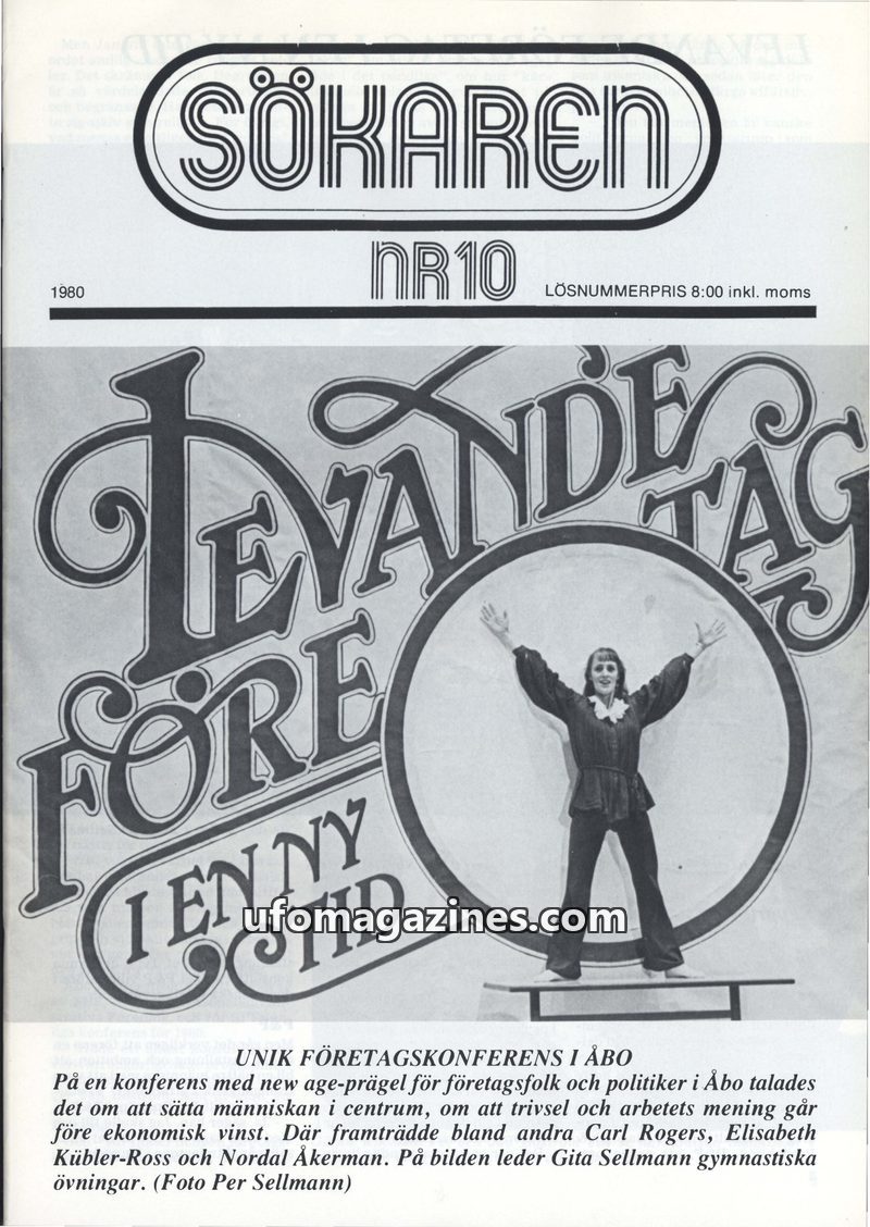 This issue of Sökaren magazine focuses on the "Living Companies" conference held in Älvsjö, Sweden, in 1981. It features articles on speakers like Marilyn Ferguson and Peter Koeste