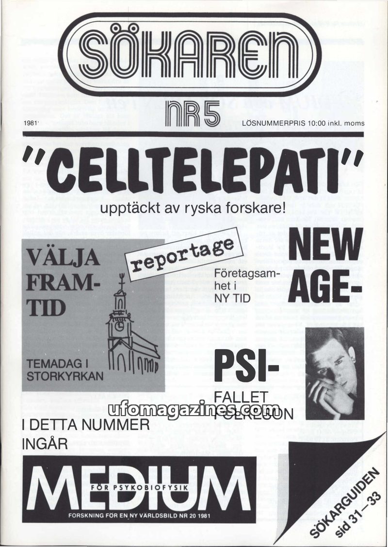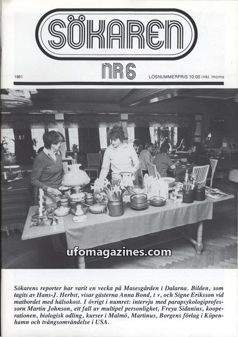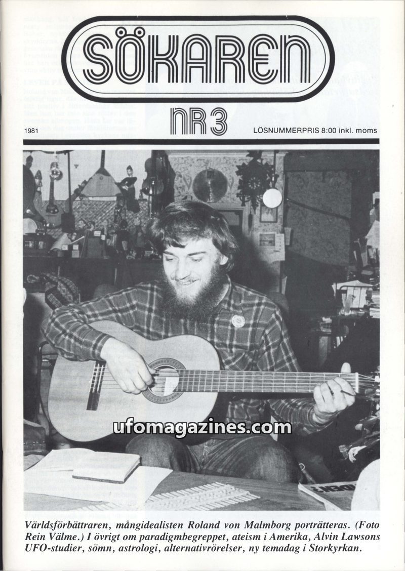 This issue of Sökaren magazine from 1981 delves into various topics including the life and philosophy of multi-idealist Roland von Malmborg, who uses a street organ to spread messa