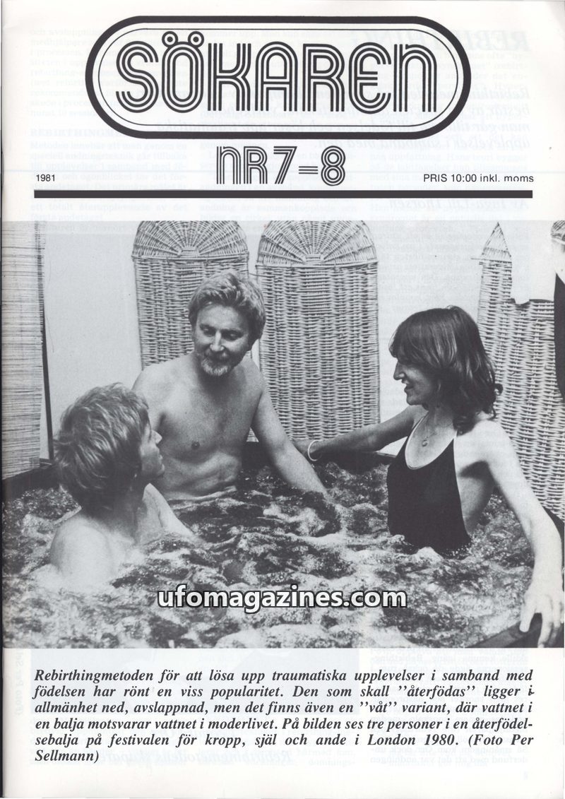 This issue of Sökaren magazine delves into rebirthing, a method for resolving birth trauma through breathing techniques, as pioneered by Leonard Orr. It also features an article on
