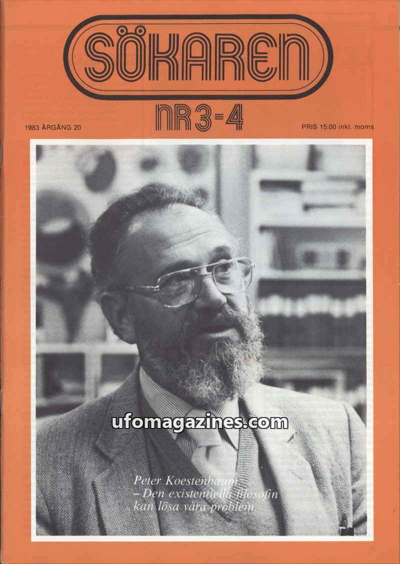 This issue of Sökaren magazine (NR3-4, 1983) delves into existential philosophy and humanism, featuring an interview with Professor Peter Koestenbaum who believes existential philo
