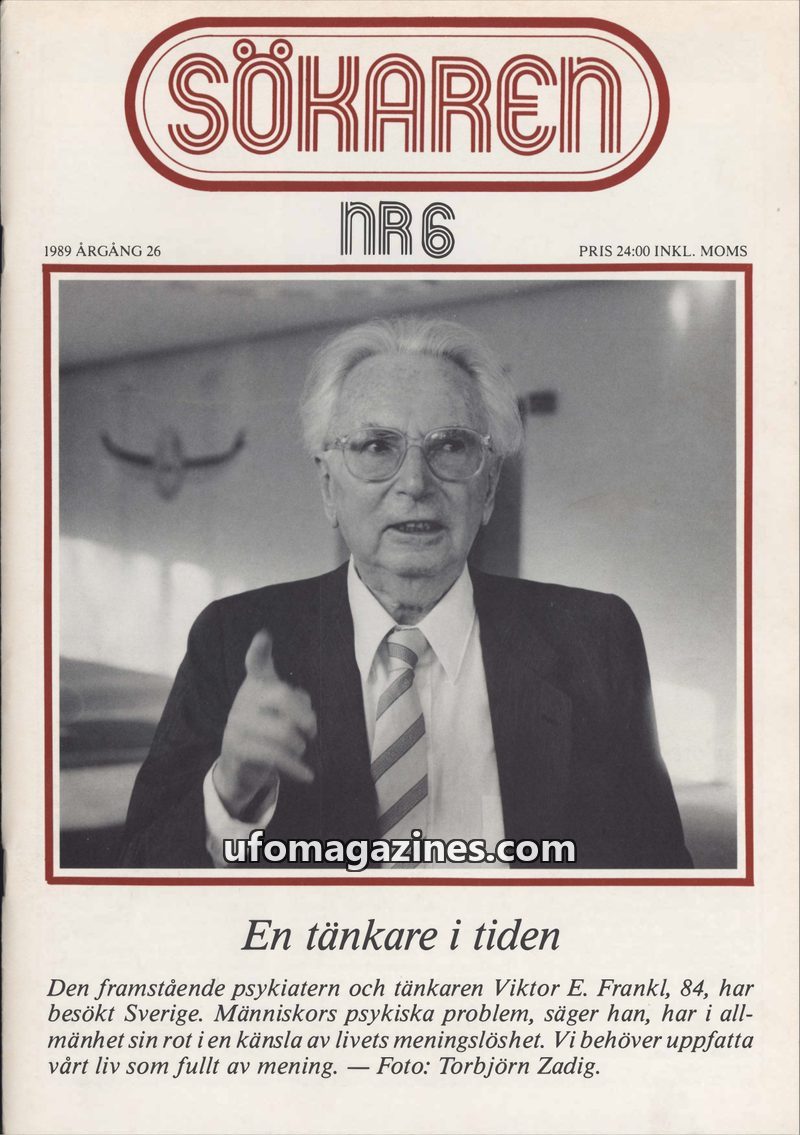This issue of Sökaren magazine features an in-depth interview with UFO researcher Budd Hopkins, discussing his work on abduction cases, the evidence he has gathered, and his respon