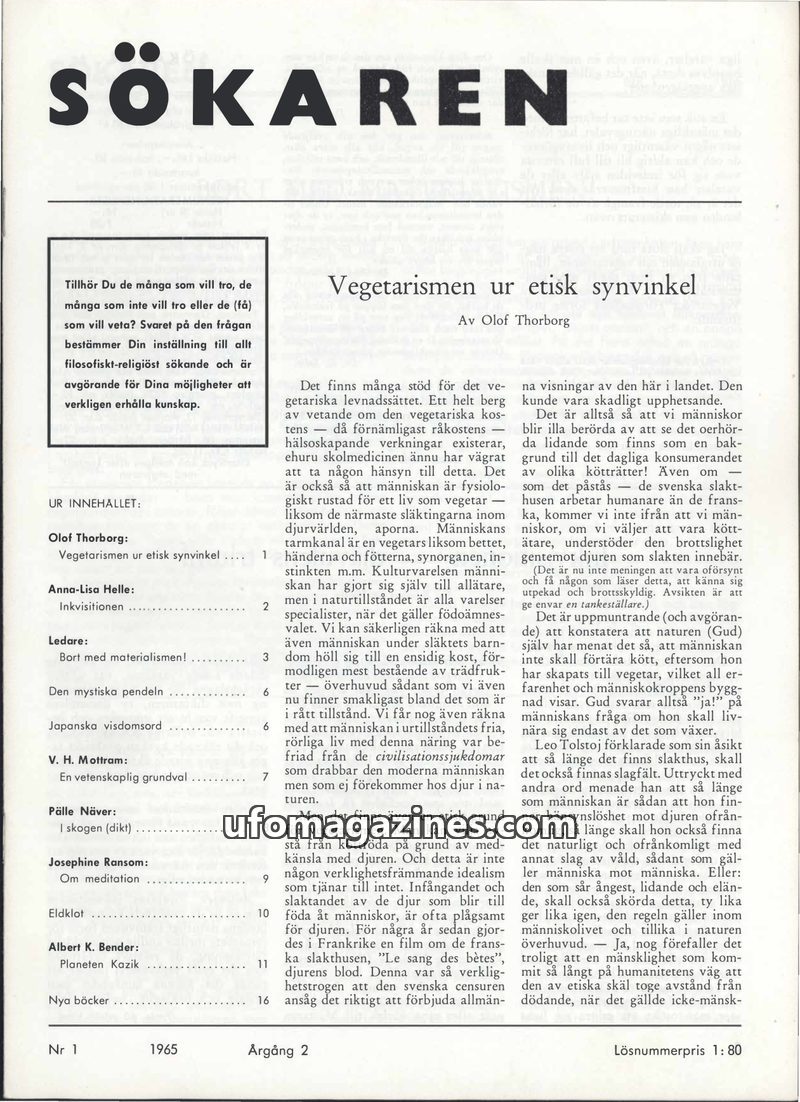This issue of Sökaren delves into various topics, including the ethical arguments for vegetarianism, highlighting the suffering of animals and the potential for a more humane socie