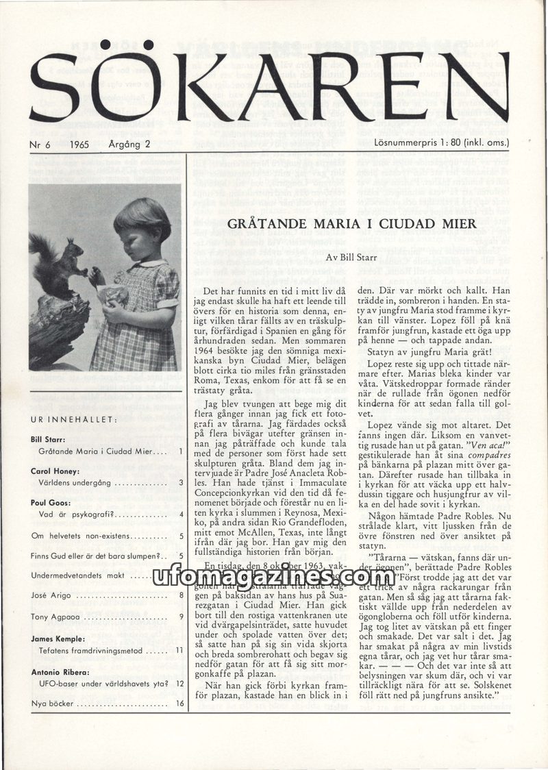 This issue of Sökaren magazine delves into several intriguing topics. A central article details the phenomenon of a statue of the Virgin Mary weeping in Ciudad Mier, Mexico, with e