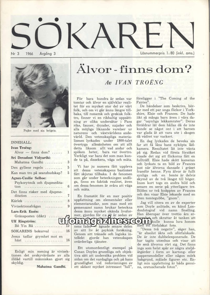 This issue of Sökaren magazine delves into several intriguing topics. The lead article by Ivan Troëng investigates the existence of elves, referencing historical beliefs and photog