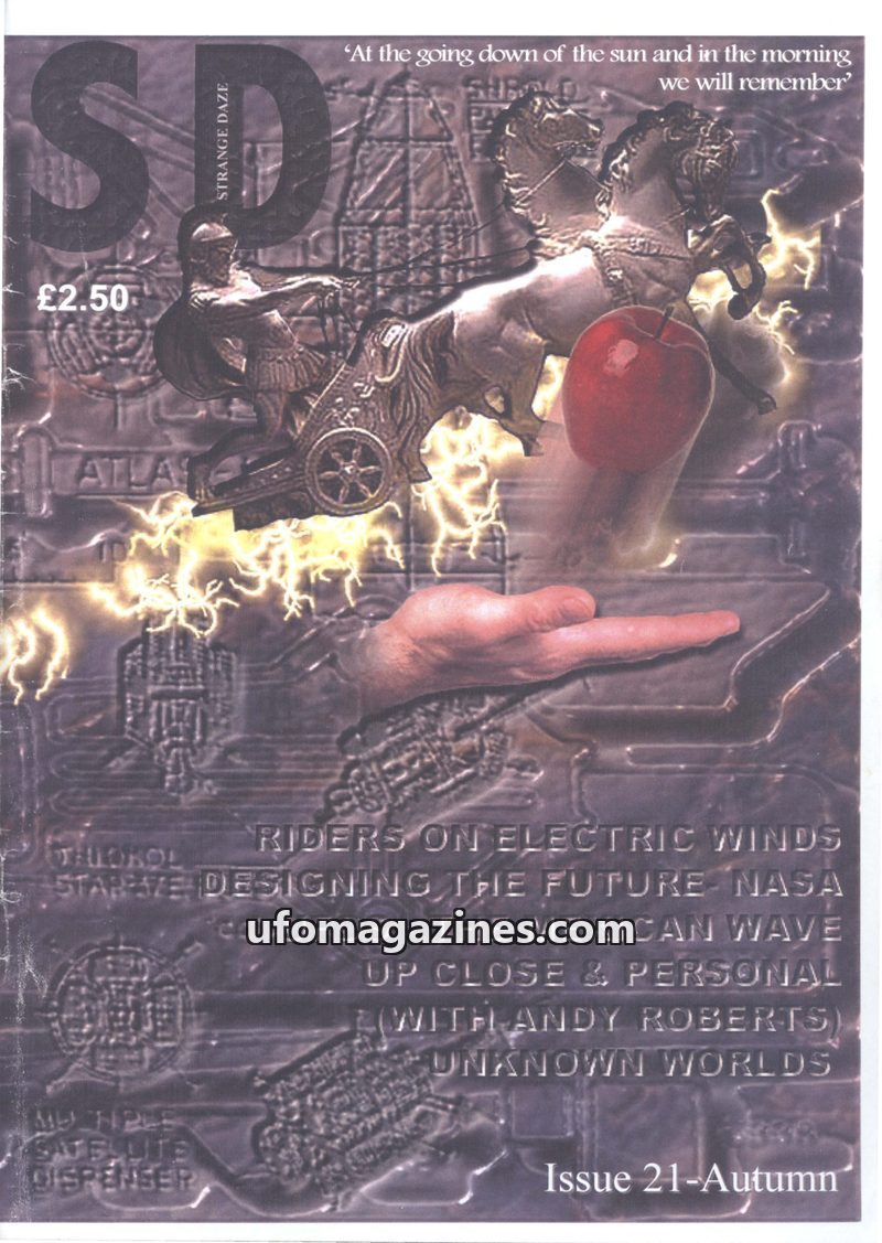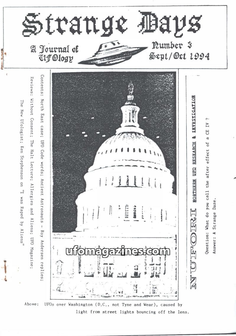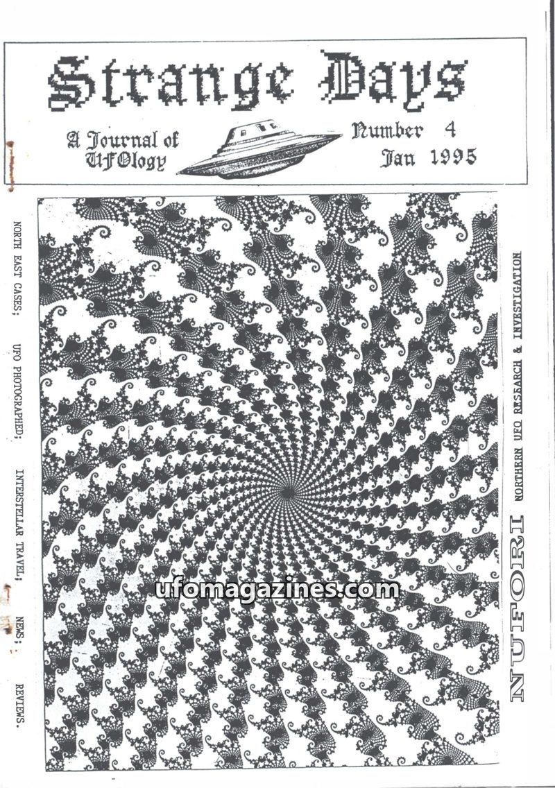 This issue of Strange Days, a journal of ufology from the North East of the UK, features several case reports including Peter Nelson's photographed sighting of a coppery dome-shape
