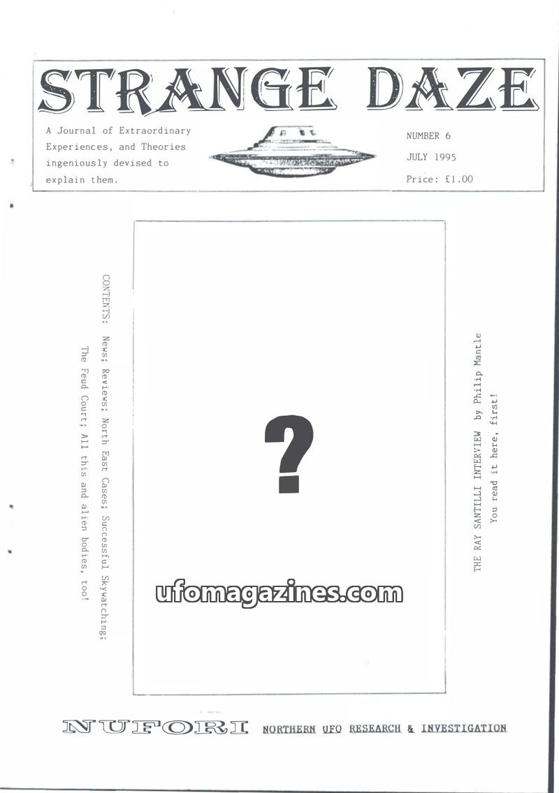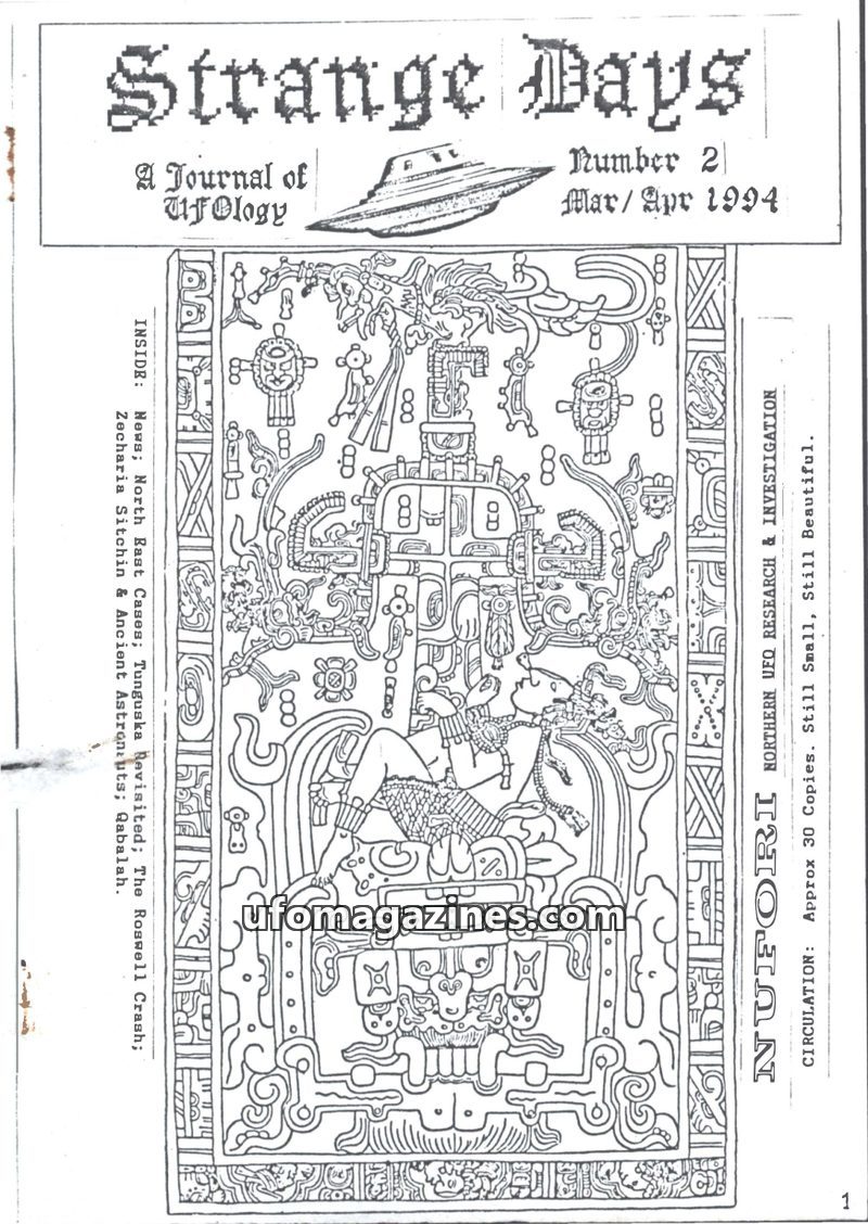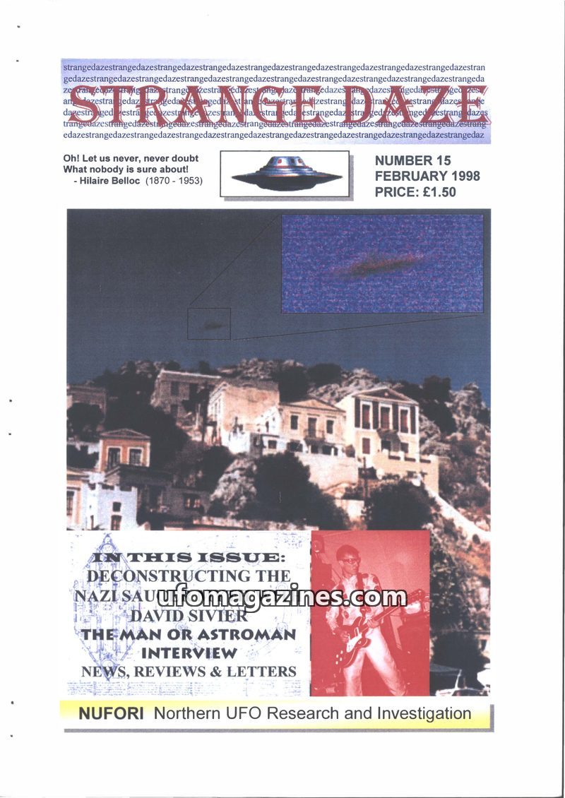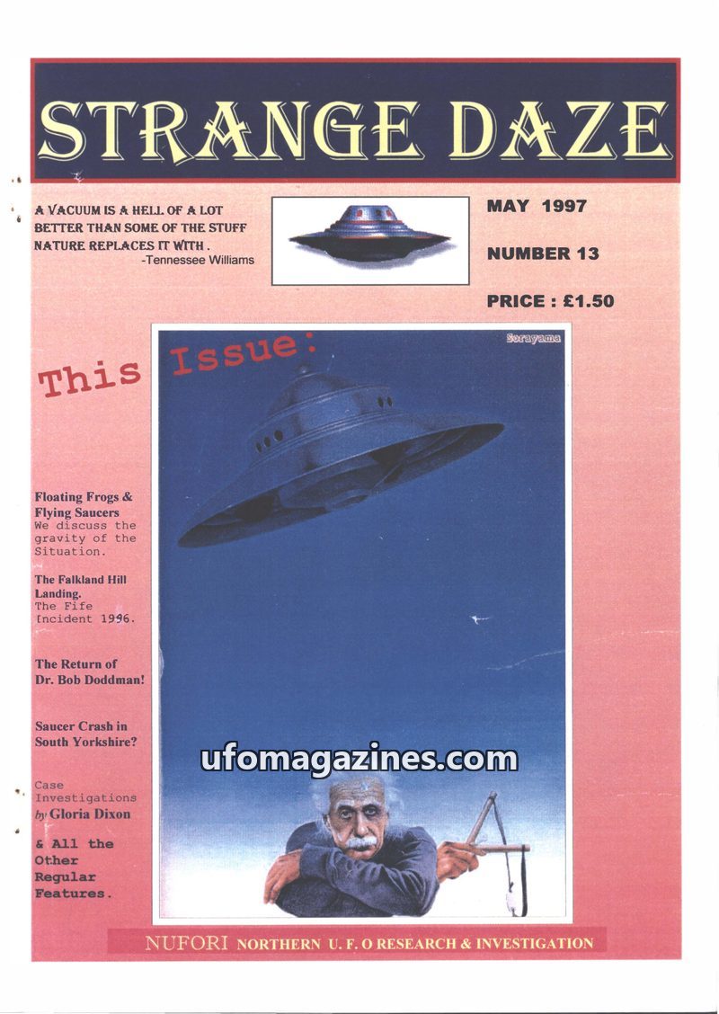 This issue of Strange Days, a journal of ufology from the North East of the UK, features several case reports including Peter Nelson's photographed sighting of a coppery dome-shape