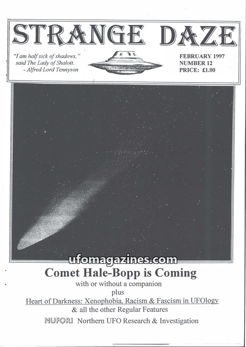This issue of Strange Daze, dated February 1997, delves into the phenomenon of Comet Hale-Bopp, debunking sensationalist claims of a companion object while providing factual inform