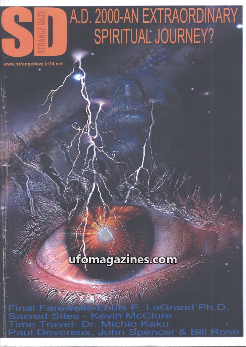 This issue of Strange Daze, dated January 2000, explores profound themes of consciousness, time, and spirituality as humanity enters the new millennium. The editorial reflects on t