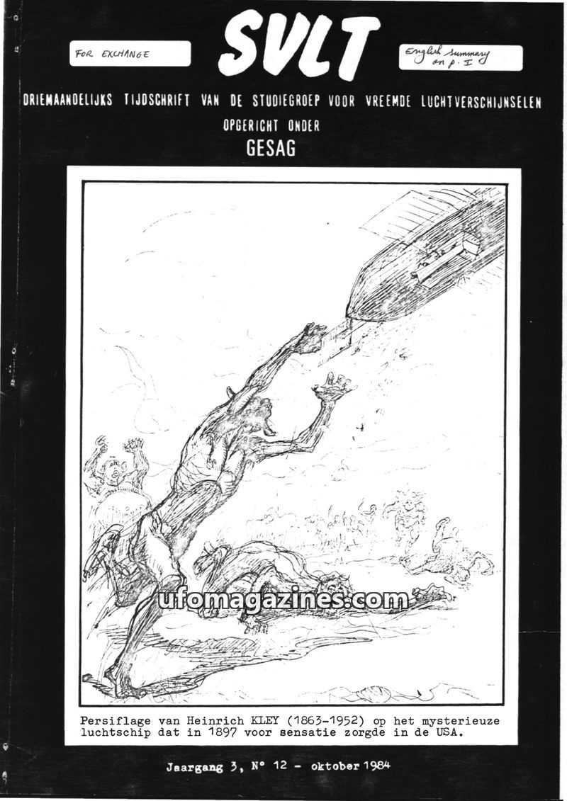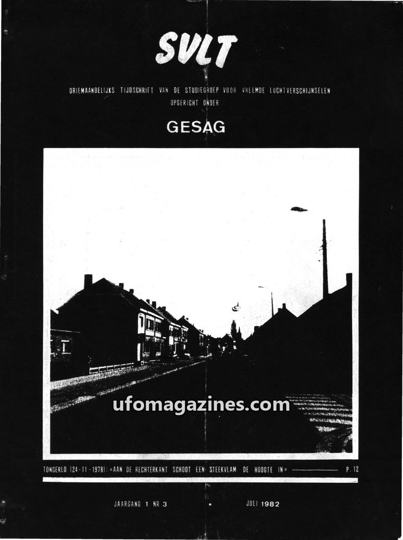 This is the first issue of SVLT, a quarterly magazine from the Studiegroep voor Vreemde Luchtverschijnselen (SVL), founded in 1979. The issue includes an editorial discussing the g