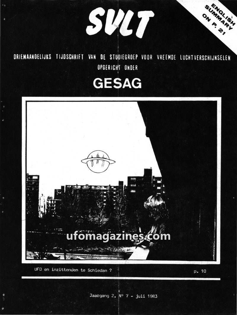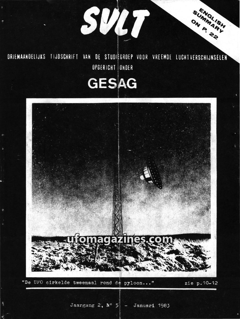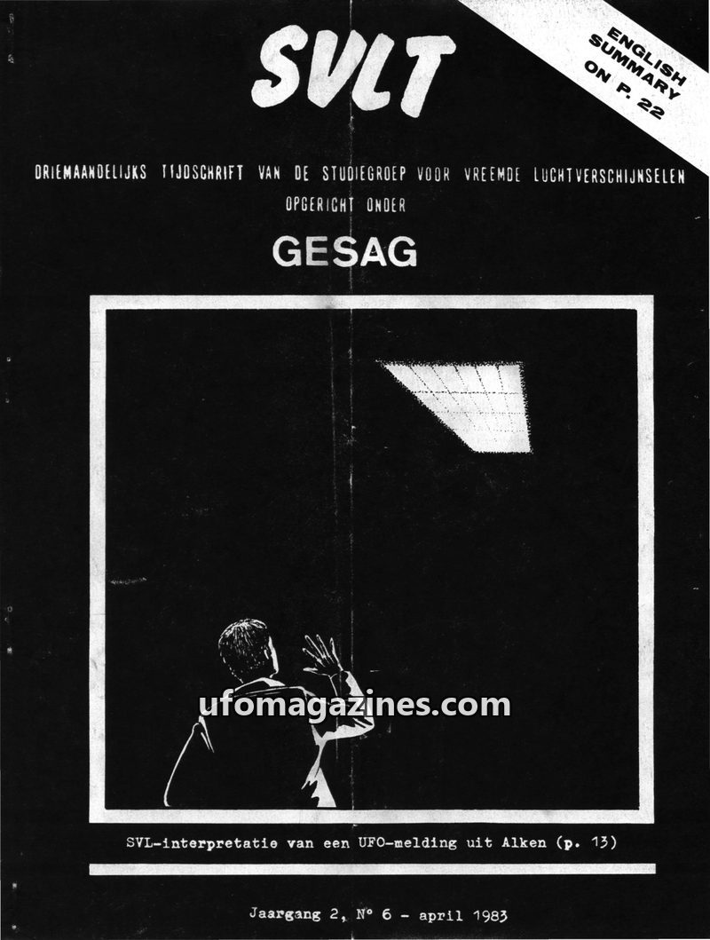 This issue of SVLT Tijdschrift, dated April 1983, features an editorial discussing international UFO cooperation through UFO 21 and the potential cessation of GEPAN in France. It i