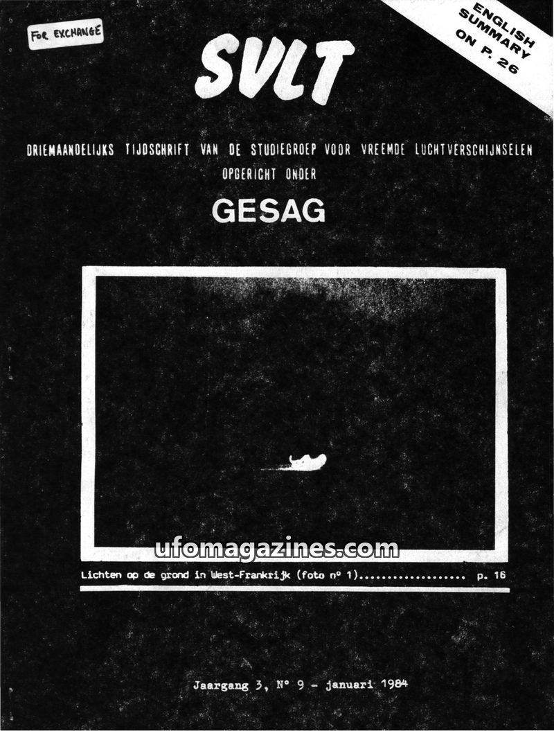 This issue of SVLT, dated October 1984, introduces two new sections: one focusing on the physical aspects of UFO cases ('CE II-cases') and another on psycho-sociological aspects. M