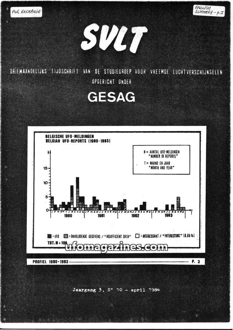 This issue of SVLT magazine focuses on Belgian UFO reports from 1980-1983, presenting a statistical profile of sightings. It also delves into historical cases, including a detailed