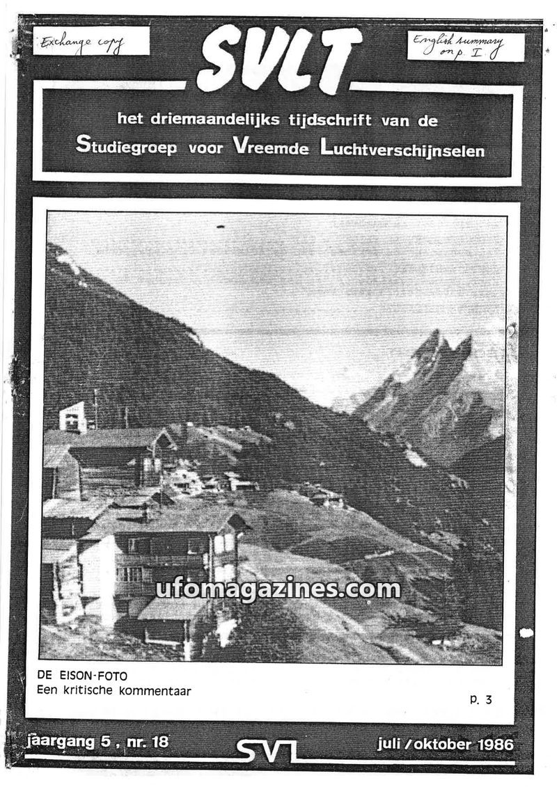 This issue of SVLT, dated July/October 1986, includes a critical analysis of the 'Eison-Foto' and a review of Belgian CE II reports. The editorial announces plans for specialized r