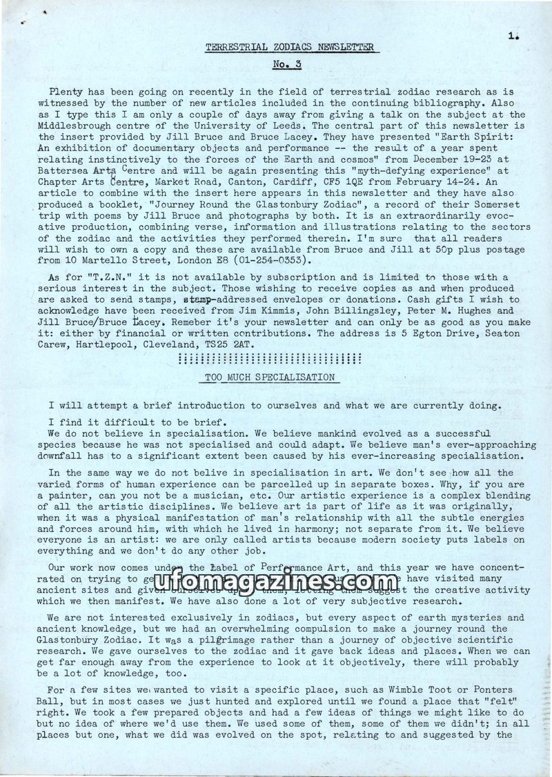 Terrestrial Zodiacs Newsletter - No 01