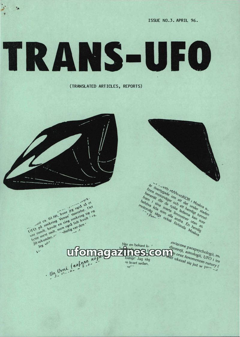This issue of TRANS-UFO covers several UFO and UAP sightings across Europe, primarily in Denmark and Sweden, during the 1990s. It includes detailed witness testimonies, photographi