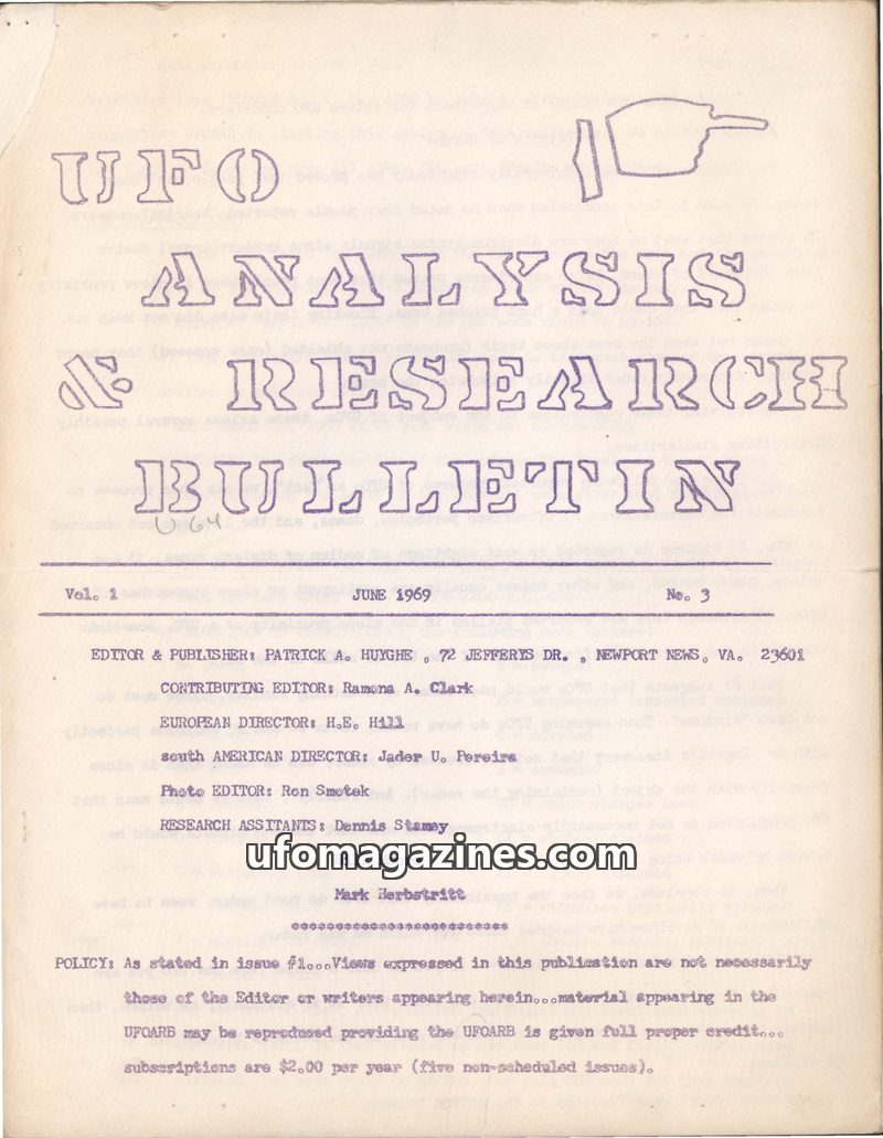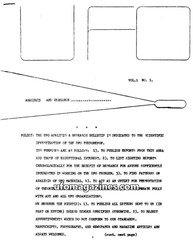UFO Analysis & Research Bulletin vol 1 no 1