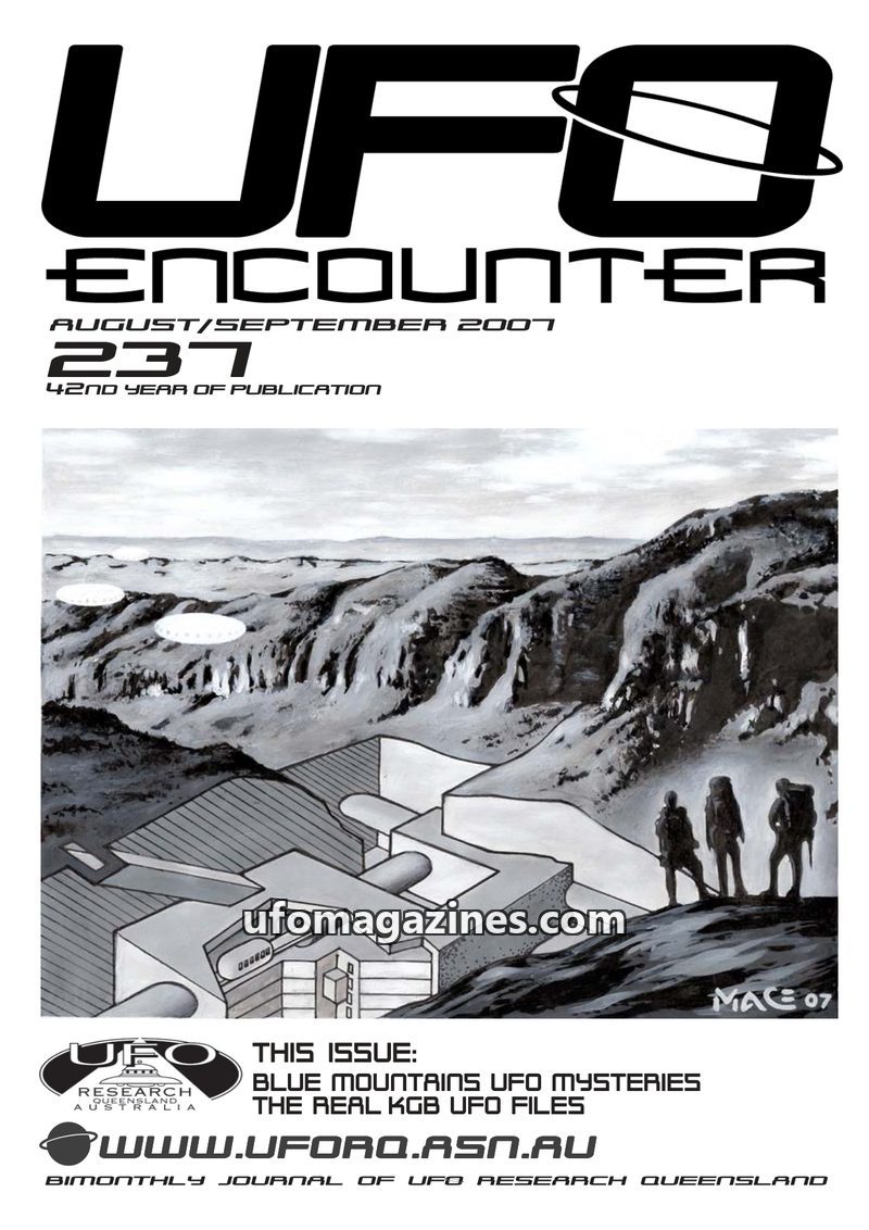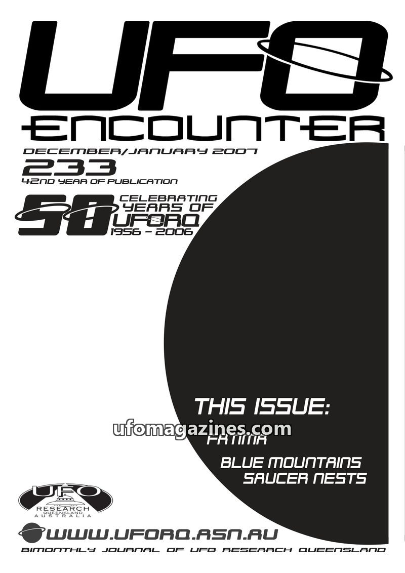 This issue of UFO Encounter covers historical UFO sightings from 1936-1959, detailing numerous cases from across Australia with descriptions of objects, their behaviour, and witnes