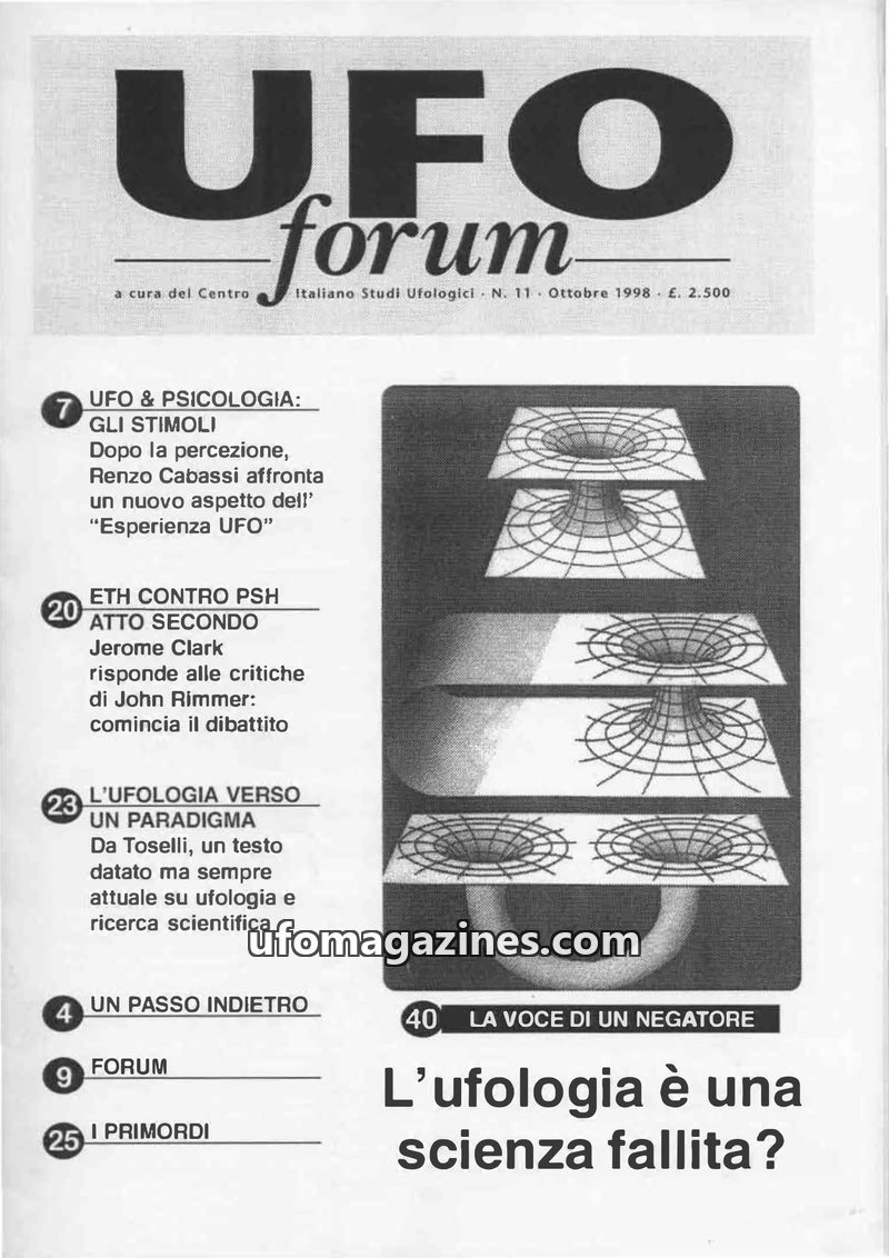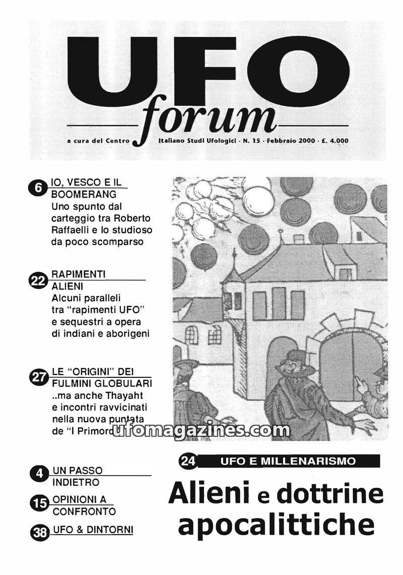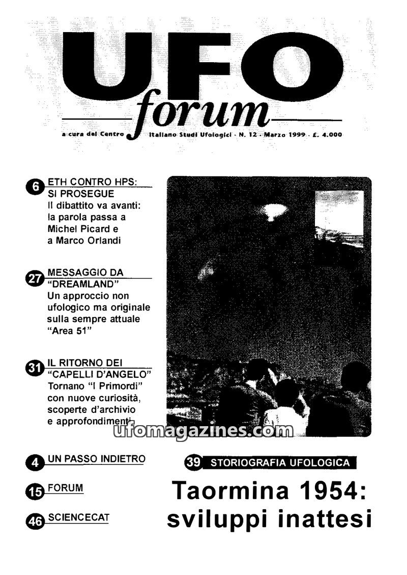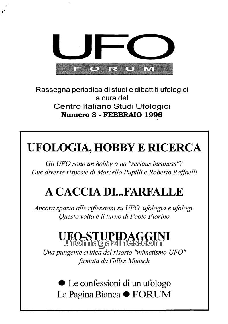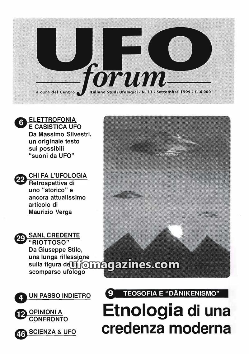 This inaugural issue of UFO Forum, published by the Centro Italiano Studi Ufologici (CISU) in April 1995, stems from a November 1994 meeting in Bologna. The issue focuses on the cu
