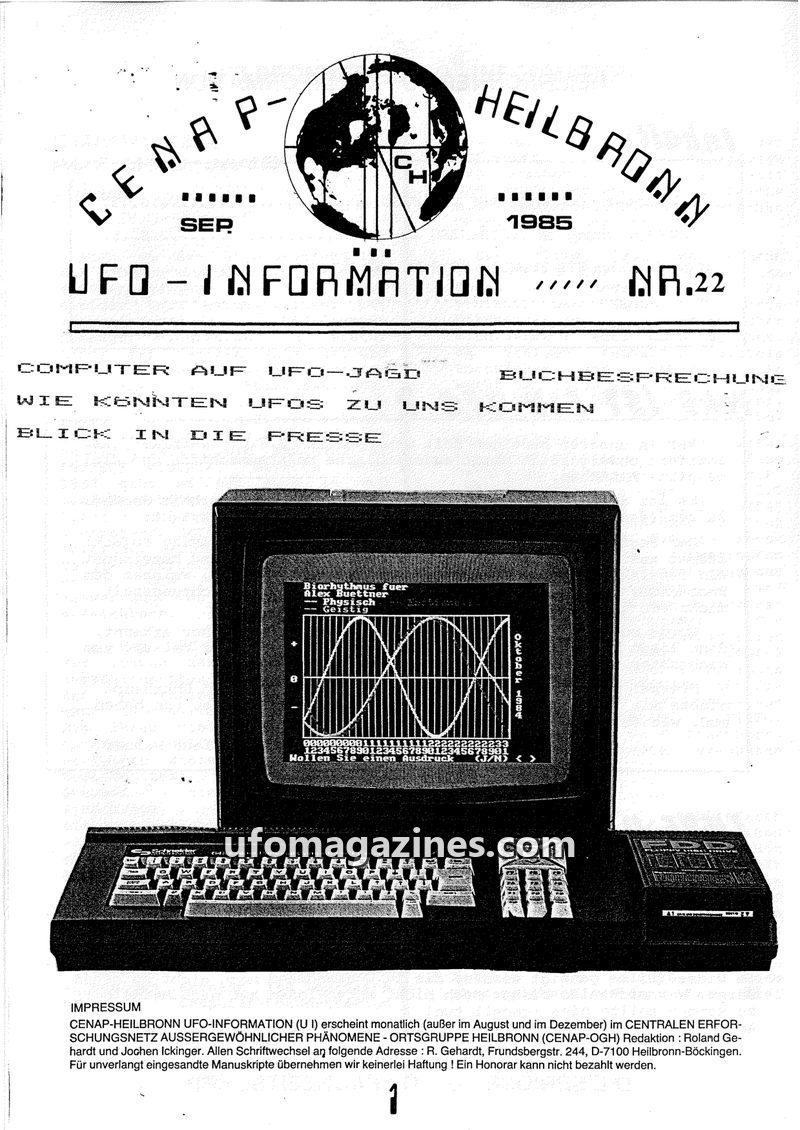 This issue of Heilbronner UFO Information from September 1985 delves into various aspects of UFO research and related scientific theories. It features articles on using computers f