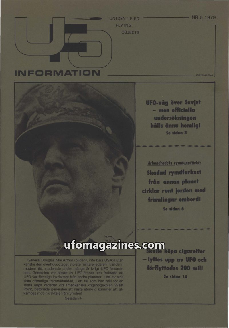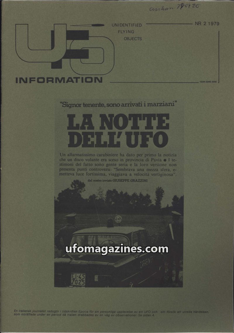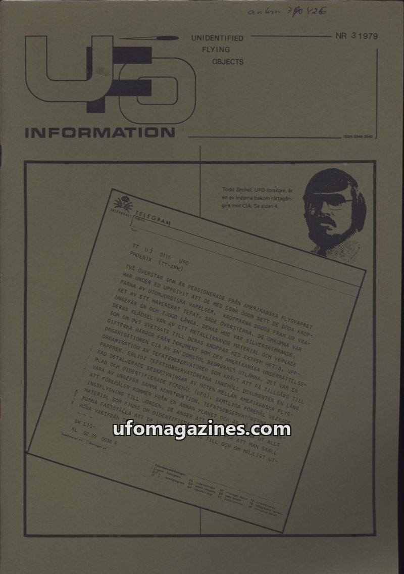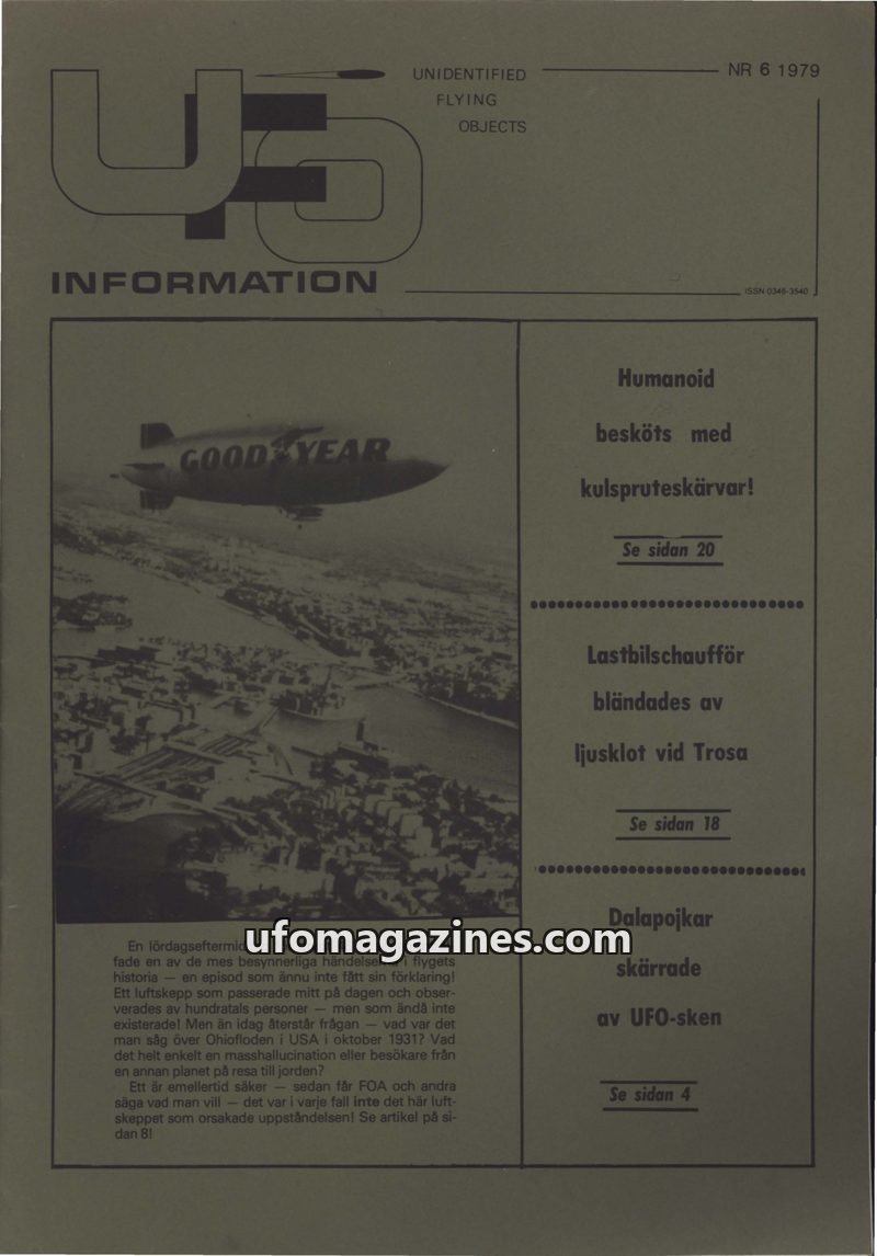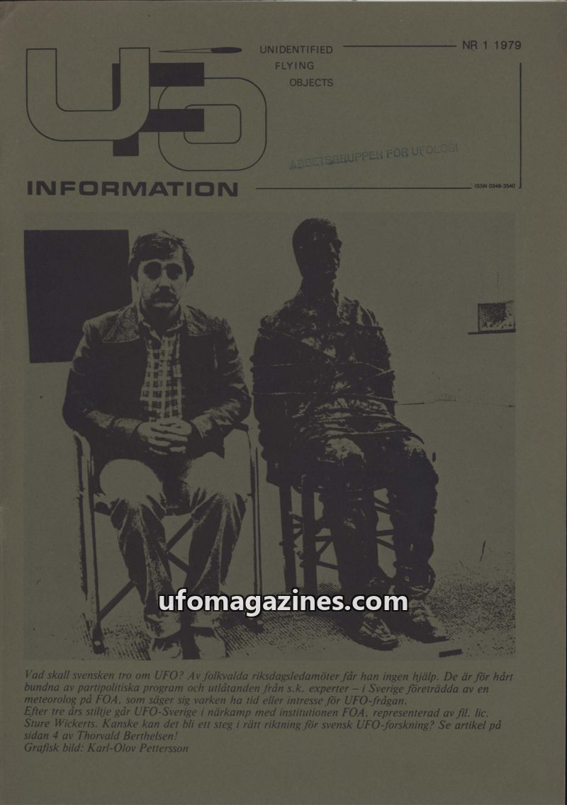 This issue of UFO-INFORMATION from 1979 critically examines the Swedish UFO phenomenon, focusing on the perceived lack of official interest and the role of FOA (Swedish Defence Res