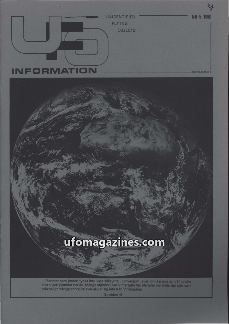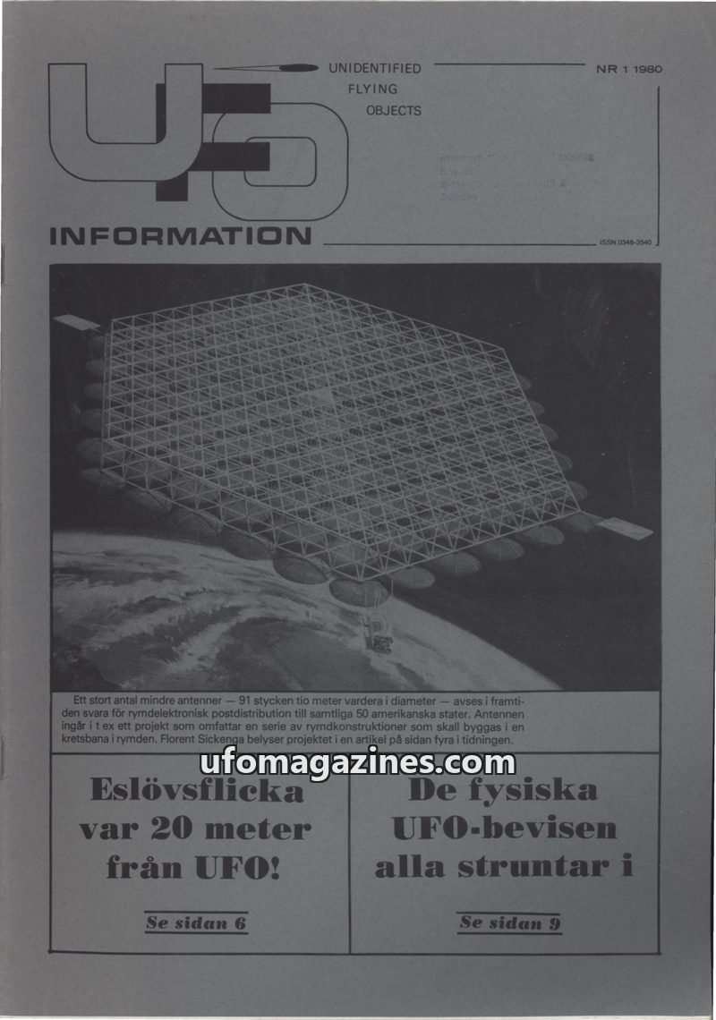 This issue of UFO-Information from 1980 covers a range of topics including a reported encounter with aliens in Västervik, Sweden, and a detailed review of 20 years of space explora