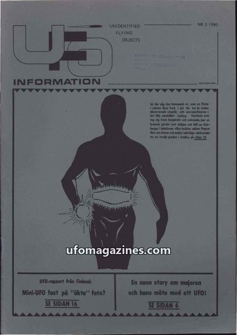 This issue of UFO-INFORMATION from 1980 delves into UFO phenomena with several key articles. One report details a close encounter in Eslöv, Sweden, where a young woman saw a UFO 20