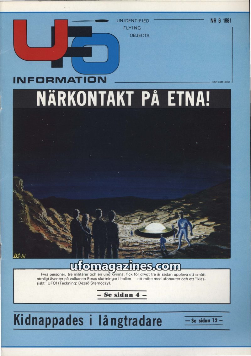 This issue of UFO Information (Nr 6, 1981) focuses on a close encounter on Mount Etna where military personnel and a civilian reportedly met alien beings. It also details numerous