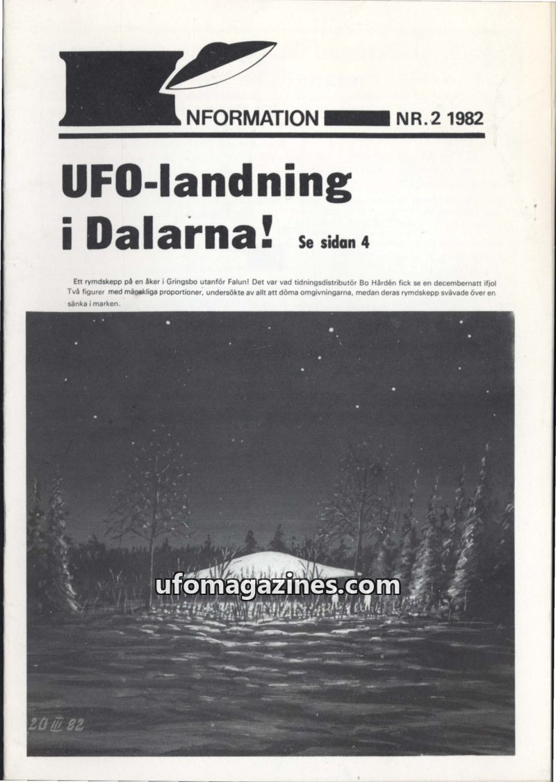 This issue of UFO-Information from 1982 covers various UFO sightings and incidents, including a notable landing in Dalarna, Sweden, where a spacecraft and two figures were observed